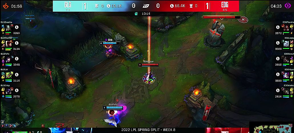 通道开启了一波完美团战,BLG战队绝对会被EDG运营到死!