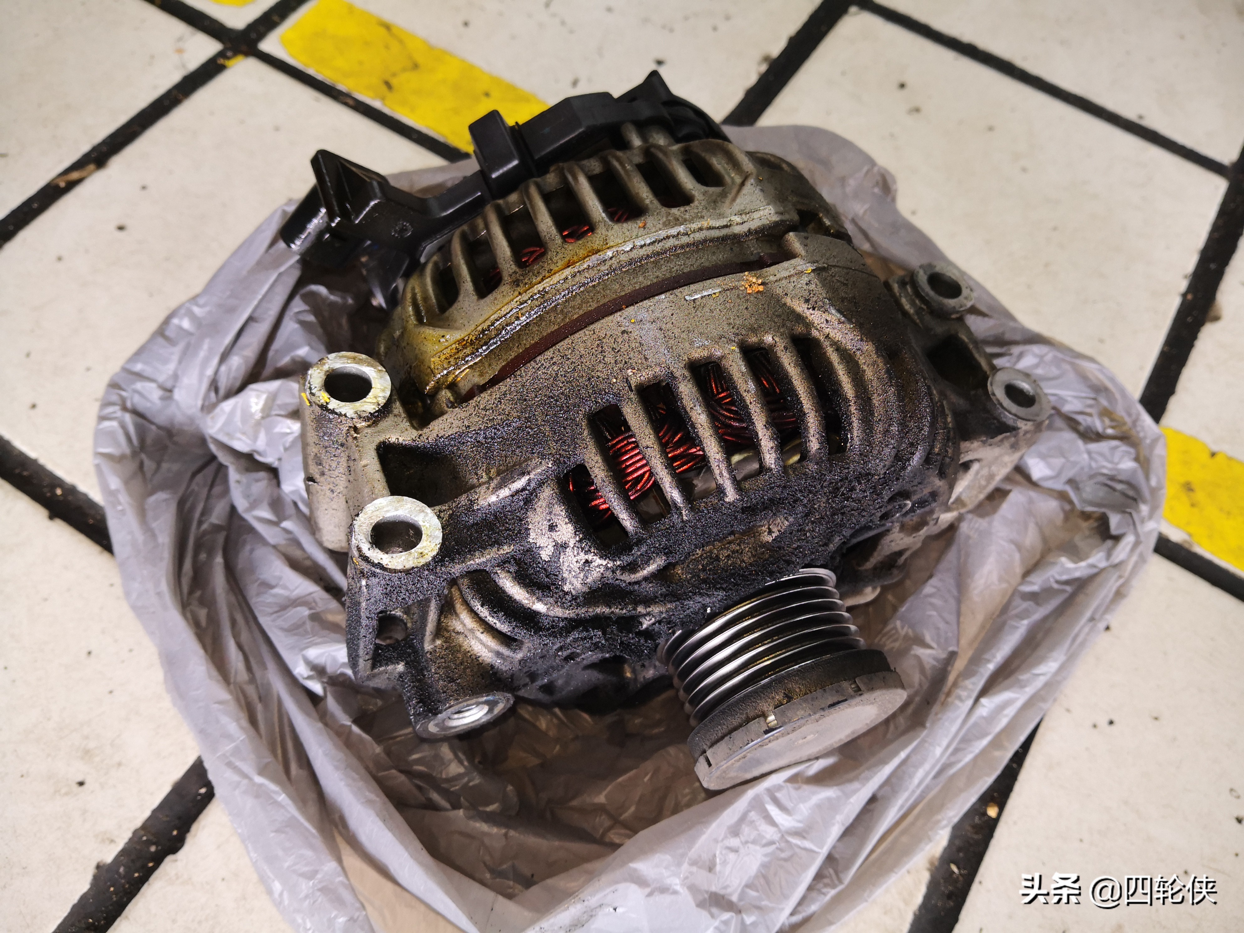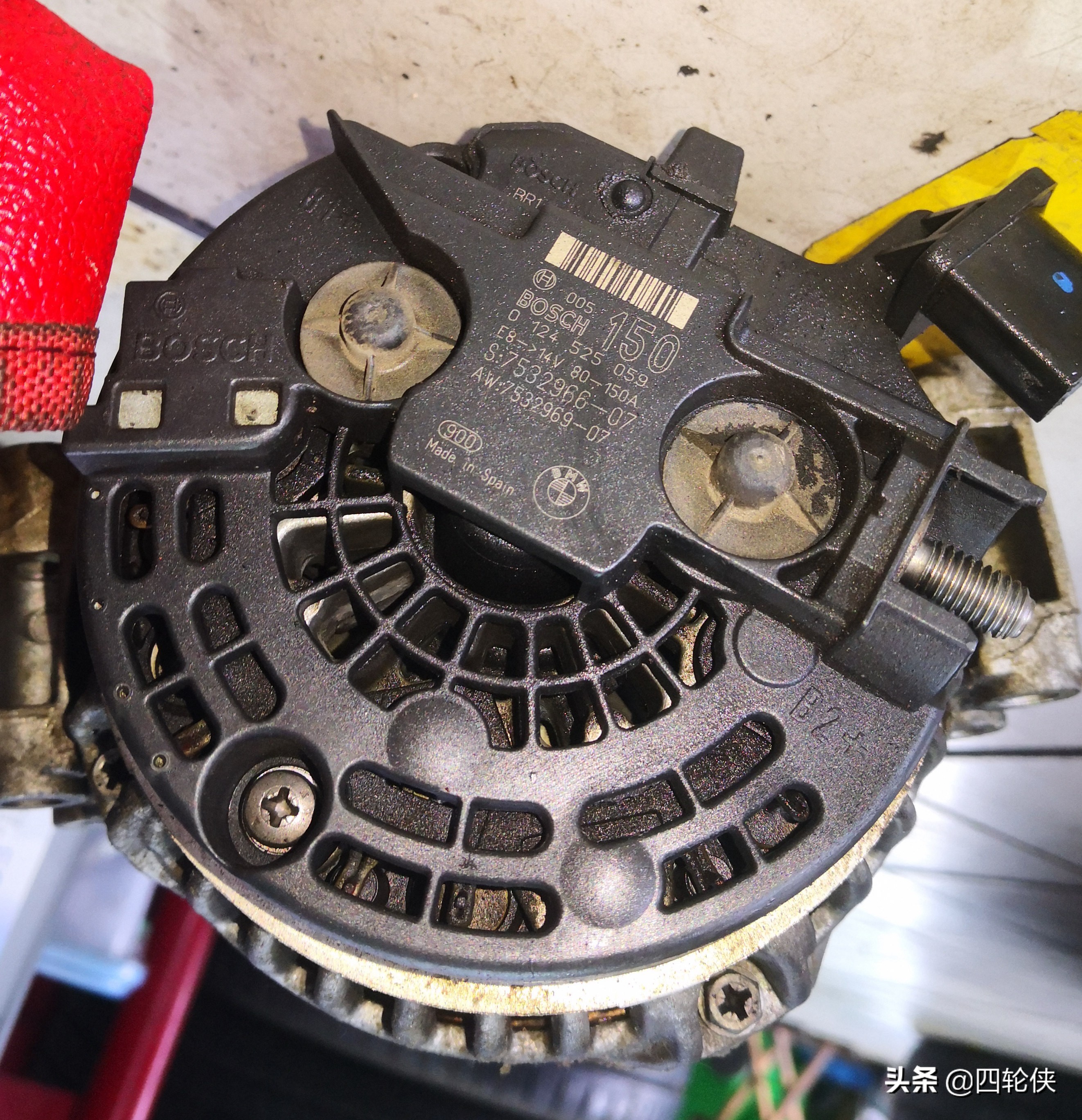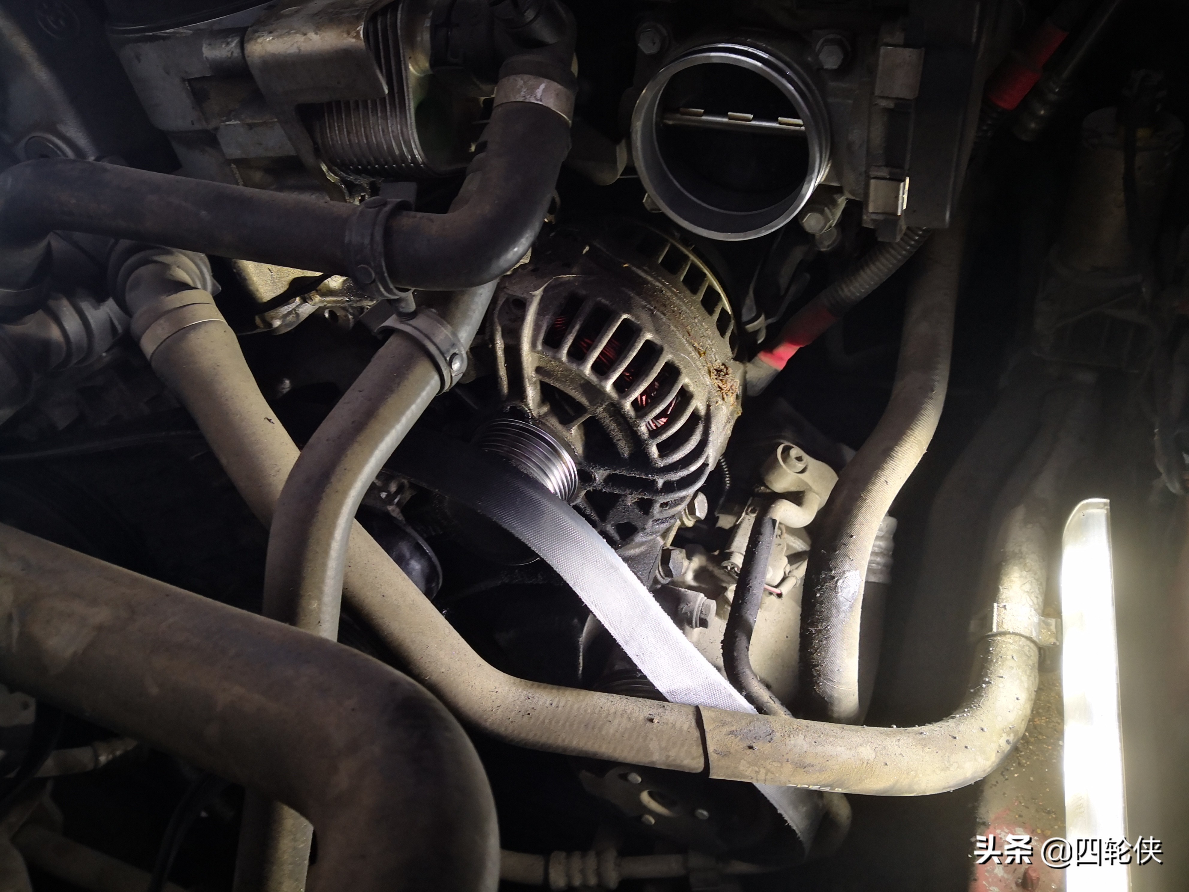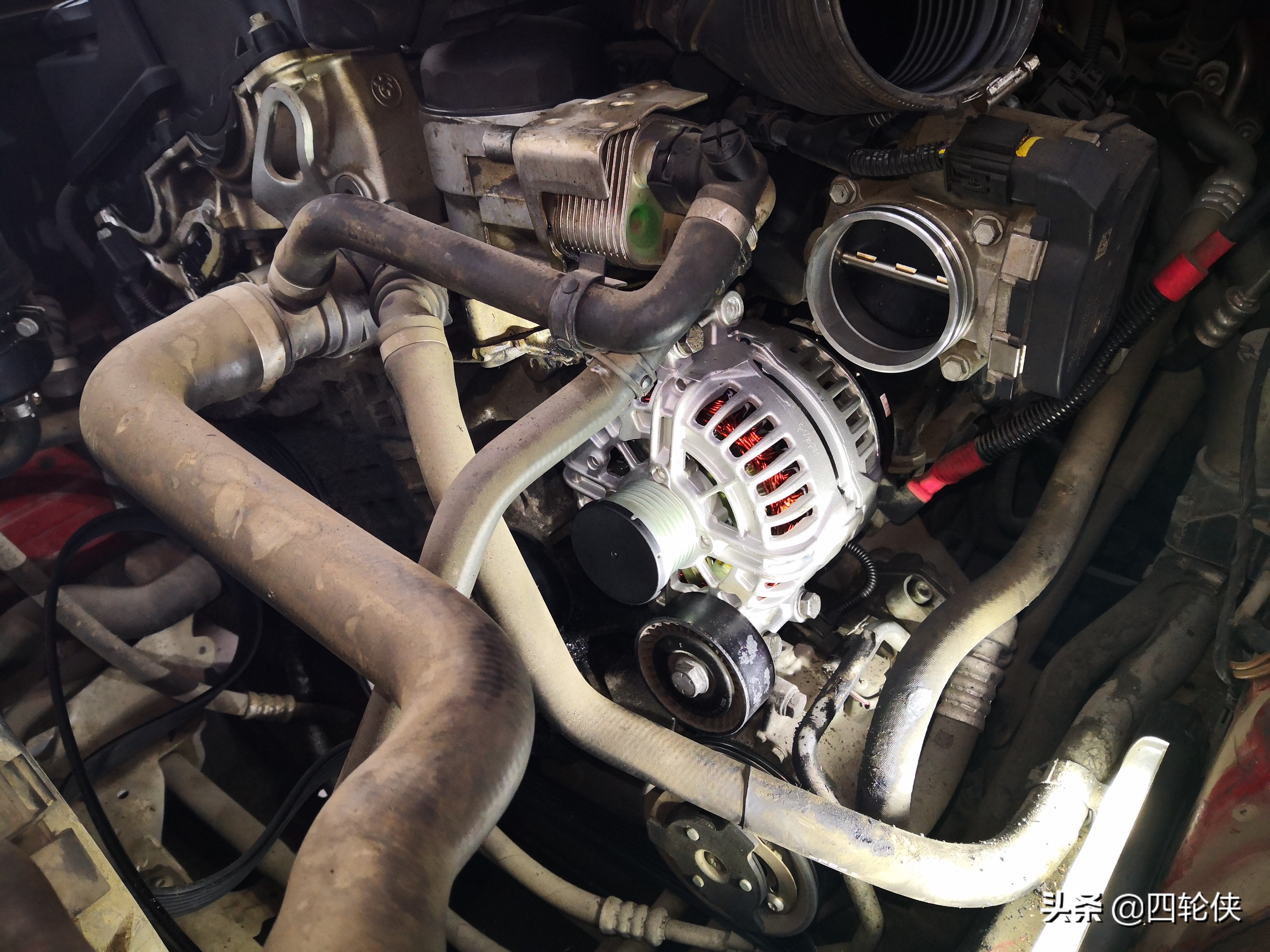 择了第二种方案。X1的发电机位置比较靠外,拆掉皮带和固定的螺丝后,没怎么费功夫就完成拆卸了。对老技师来说,安装发电机不是很复杂。