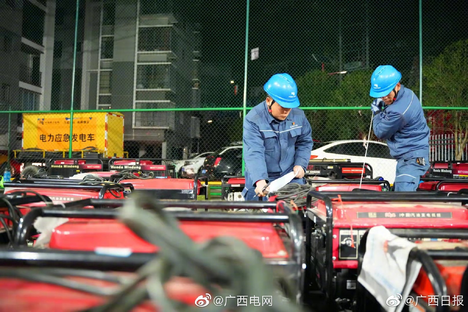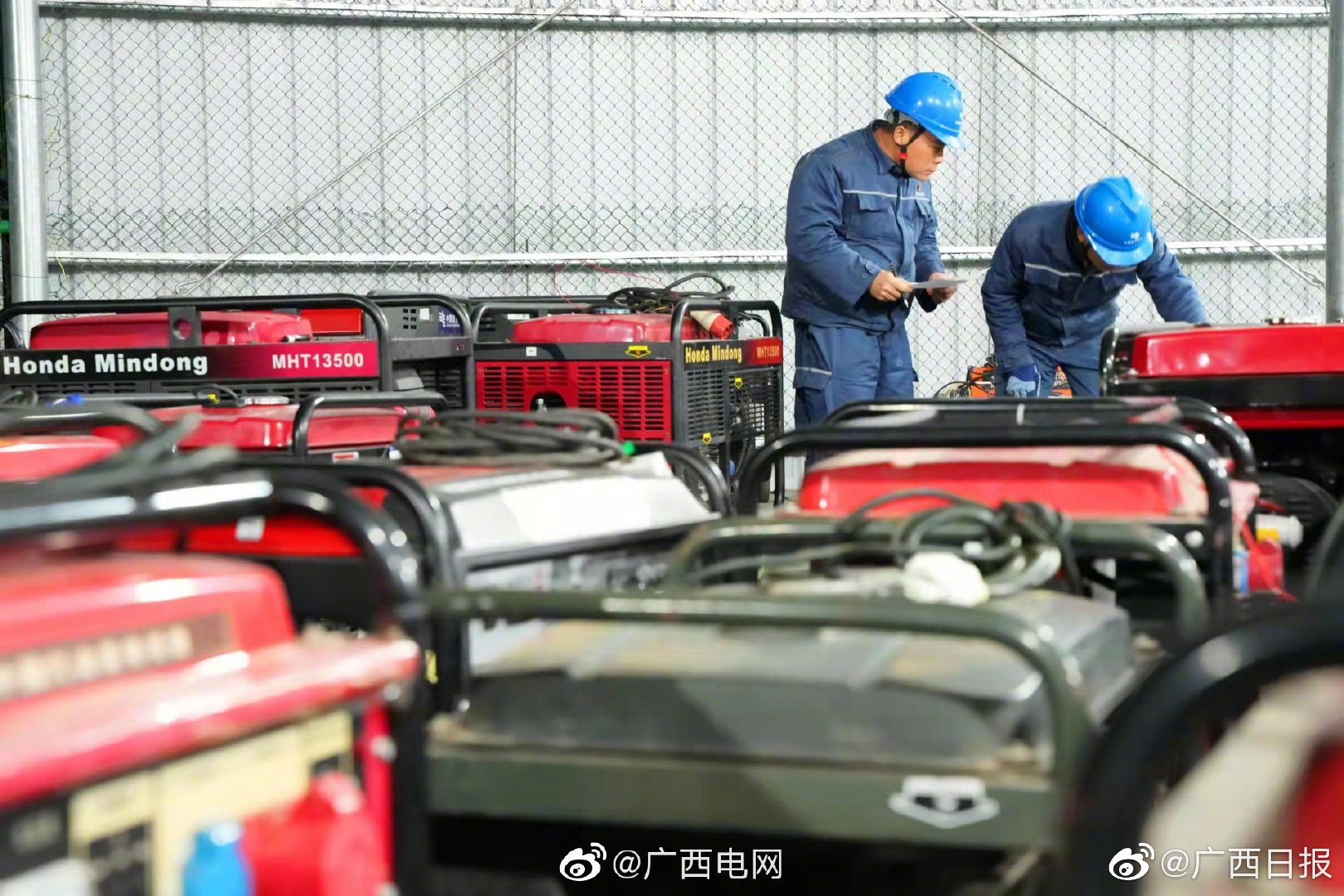 广西电网公司全网一盘棋,从全区各地紧急调配98台发电机,并连夜装车。这些应急物资将于2月22日一早送达受灾的瑶乡村村屯屯。#光一直在# @南网50Hz @广西电网